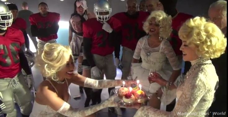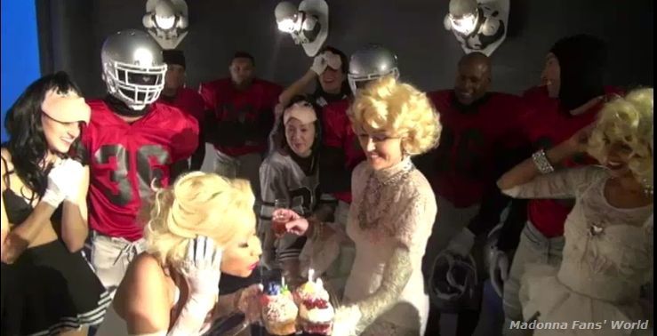 - Junto a Madonna participaron también Nikki Minaj y M.I.A.. Uno de los días de filmación, se celebraba el cumpleaños de Minaj, por lo que Madonna la sorperndio con un improvisado pastel mientras todo el grupo le cantó el feliz cumpleaños.