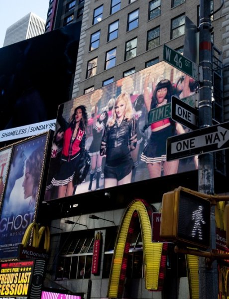 - La canción se estrenó simultáneamente en 95 estaciones de radio propiedad de «Clear Channel» en todo USA, así como en estaciones adicionales en Australia, Nueva Zelanda y el Reino Unido. Además, está utilizando su red de vallas publicitarias digitales al aire libre para reproducir el vídeo completo en lugares «altamente visibles» de la ciudad de Nueva York, Las Vegas, París, Londres, Oslo y Helsinki y más de 1.600 vallas publicitarias más pequeñas de «Clear Channel» en estaciones de metro, trenes, centros comerciales y bares que reproducieron el vídeo durante todo el fin de semana de su estreno.
