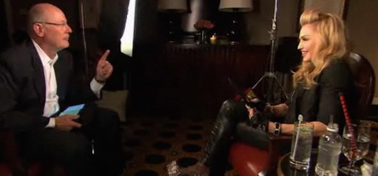 Durante abril y julio de 2012, Madonna dió unas pocas entrevistas para la prensa para promocionar su disco «MDNA» y el lanzamiengo de su gira del mismo nombre. Sería una de las pocas veces en donde Madonna no realizaría una gran rueda de prensa y gira de promoción de alguno de sus trabajos. Para «MDNA», la cantante realizó únicamente 4 entrevistas para todo el mundo. Entre ellas, la realizada por Harry Smith para el programa «Rock Center» con Brian Williams para USA; luego para los programas «Lorraine» y «Daybreak» para la televisión de UK y para los programas «Occupy Deejay» y «RDS» para Italia.