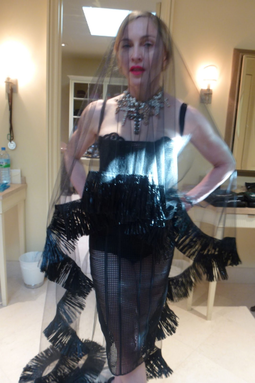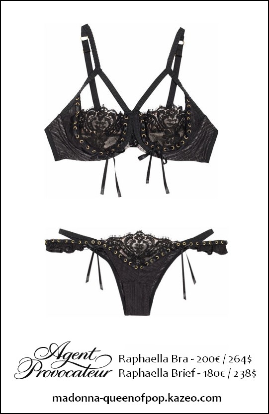 Además, el conjunto de ropa interior modelo «Raphaella» de la firma «Agent Provocateur» y un bolero de plumas en color rosa de la colección otoño-invierno 2011 de Alexandre Vauthier (fotos usadas para la portada del single «Girl Gone Wild»). Nótese que en estas fotografías, Madonna usó además la capa de encaje de la firma «Givenchy» y los guantes de cuero rojo de «Chanel» ambos usados durante la premiere del film «W.E.» en Londres a comienzos de 2012.