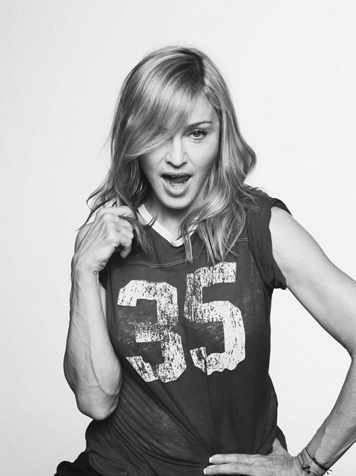 Para esta sesión de fotos, Madonna usó prendas de varios diseñadores y firmas de lujo, pero lo que más se destaca es la camiseta modelo «Instancia Star» del diseñador Markus Lupfer (las fotos se usaron para la portada del single «Give Me All Your Luvin‘»).