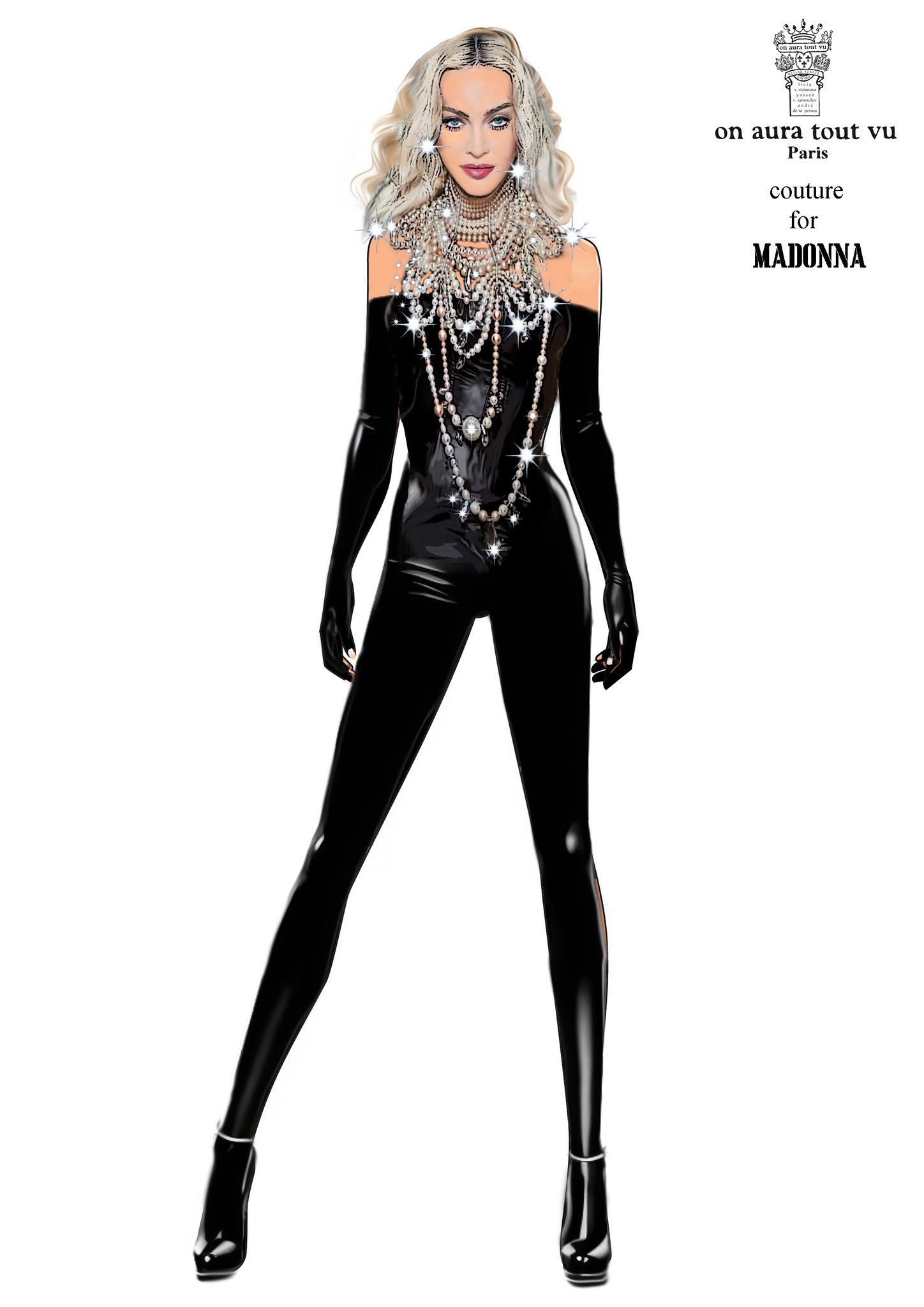 - Vestido negro, diseñado por Samuel Ososki con una mezcla de terciopelo, cuero, seda y látex realizado especialmente para Madonna.