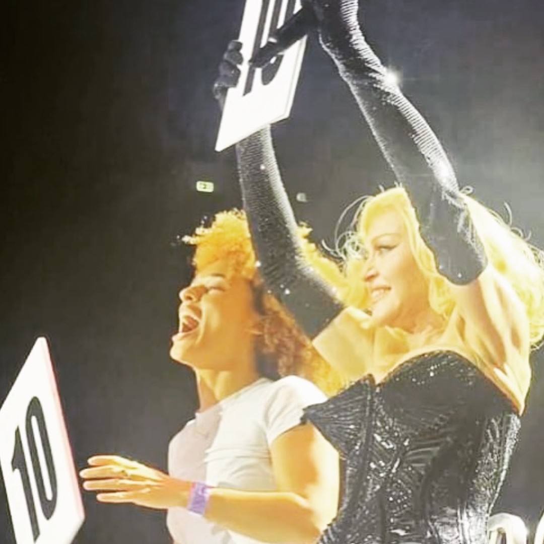 Antes del segundo concierto, Madonna y todo el equipo se tomaron un momento para celebrar el cumpleaños de la bailarina Sierra Herrera, la cantante abrazó cariñosamente a la bailarina quien se mostró emocionada.