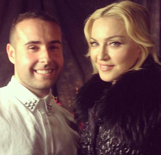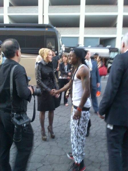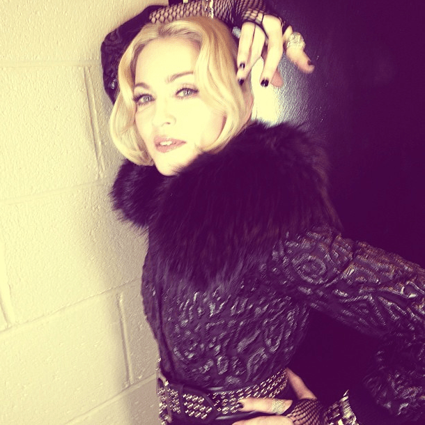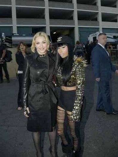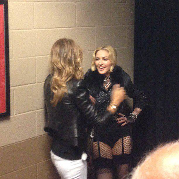 Madonna arribó al «MGM Grand Garden Arena» enfundada en un soberbio tapado negro cruzado de cuero que solo dejaba ver sus medias de red y altísimos zapatos. Antes de ingresar, la diva aprovechó para saludar a algunos amigos y celebridades como Nicki Minaj o Cee-Lo- Green.