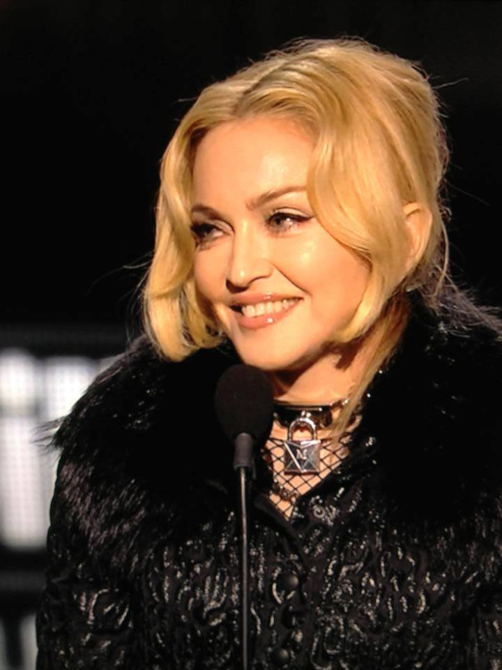 Madonna comenzó su discurso refiriéndose a un montaje anterior de imágenes de su «MDNA Tour», proclamó: «¡Me llevó más tiempo negociar si podía mostrar mi trasero en ese tráiler que negociar esa gira!». Una vez aclarado esto, Madonna profundizó en una larga lista de agradecimientos, incluidos los coreógrafos Rich y Toni Talauega, la diseñadora de vestuario Arianne Phillips, el director musical Kevin Antunes, el escenógrafo Mark Fisher, Arthur Fogel de «Live Nation» y, por supuesto, sus fans. También agradeció a sus cuatro hijos, dos de los cuales la acompañaron en la exitosa gira: «Dicen que se necesita un pueblo para criar a un niño, pero se necesitaron varias aldeas internacionales para montar mi espectáculo».