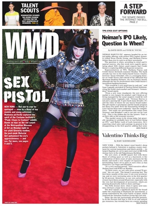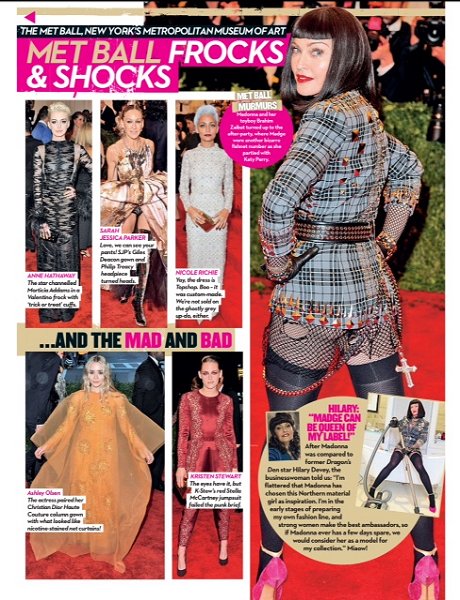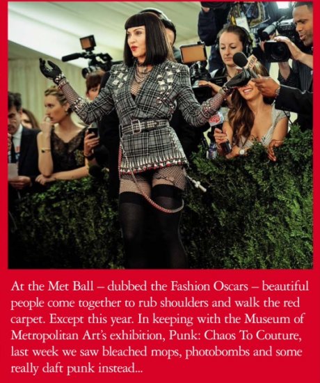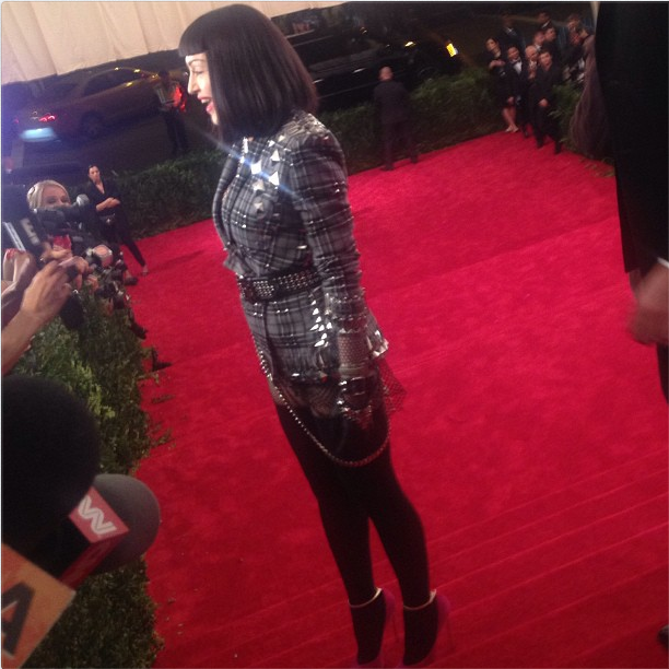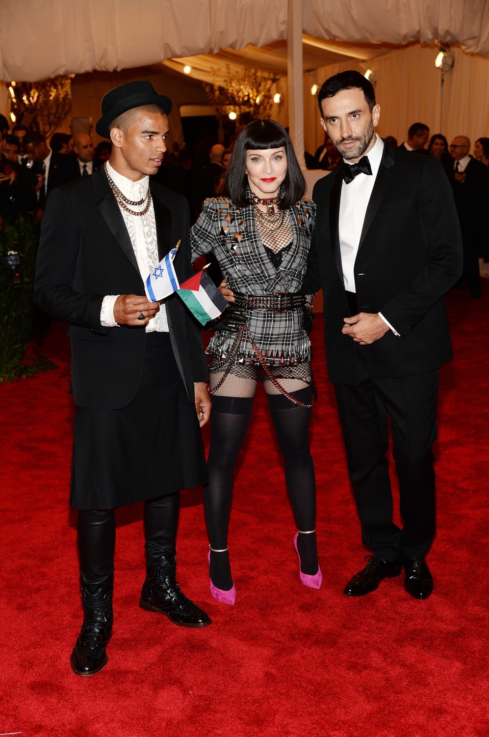 Como ya es sabido, el primer sábado de mayo de cada año se lleva a cabo la «MET Gala» o «Costume Institute Gala» el cual es un evento benéfico que da inicio a la exposición de moda anual del «Instituto del Vestido del Museo Metropolitano de Arte» de New York. Una de las principales organizadoras de la fiesta desde hace varios años es la icónica Anna Wintour, Jefa Editora de la revista «Vogue» y un referente único en lo que a moda, estilo y tendencias respecta. Los fondos recaudados en la gala constituyen todo el presupuesto anual de «Instituto del Vestido» y cada año, la temática de la fiesta varía en relación a algún diseñador o firma legendaria de manera que todos los invitados deben concurrir con atuendos de acuerdo al tema del año. La temática del 2013 estuvo vinculada con el mundo oscuro de la subcultura punk y de cómo había influído en la moda y en el estilo desde fines de los 70s hasta mediados de los 80s. El título de esta gala fue «Punk: Chaos to Couture» («Punk: del caos a la Alta Costura»). Como era sabido, Madonna era una de las invitadas más esperadas en la fiesta del «MET» y como todos los años, la cantante no estaba dispuesta a pasar inadvertida en la alfombra roja. El día del gran evento, Madonna, quien a menos de un mes de ingresar a Instagram, ya era fanática de la red social, subió unas fotos mostrando su preparación y hasta revelando su atrevido outfit. «Lista para la gala» comentó la diva con unas fotos en el cuarto de baño de su mansión en Manhattan. Por otro lado, su novio, el bailarín Brahim Zaibat, también subió a sus redes sociales una imagen junto a Madonna y al diseñador Ricardo Tisci con el texto: «La fiesta del MET, la palabra de esta noche es PAZ para el medio oriente».