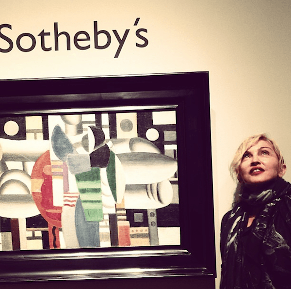 El 8 de mayo de 2013, Madonna donó su pintura original de «Trois Femmes à la Table Rouge» de Fernand Léger a la subasta de arte moderno e impresionista de «Sotheby’s». Se estimó que la pintura de 1921 que valía entre U$S 5 y 7 millones y se vendió por U$S 7,2 millones y las ganancias beneficiaron a la «Fundación Ray Of Light» de Madonna, que apoya proyectos de educación para niñas en Medio Oriente y el sur de Asia. Días antes de la subasta, en su cuenta de Instagram, Madonna subió unas fotos comentando la venta de su cuadro: «En Sotheby’s junto a mi pintura, diciendo una oración para algún generoso coleccionista que a ame a Leger y la idea de empoderar a las mujeres. Gracias Sotheby’s. Gracias Pierre».