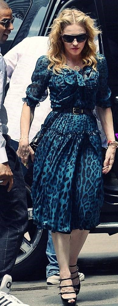 Para la celebración religiosa, Madonna llegó al «Kabbalah Center» acompañada de su novio Brahim Zaibat. Lucía elegante con un vestido con falda amplia estampado en color azul.