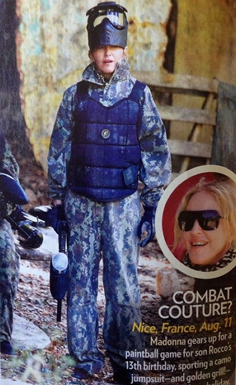 Mientras Madonna y su familia pasan unas breves vacaciones en la Costa Azul francesa para esperar las celebraciones del cumpleaños de la diva, toda la familia ha decidio salir a celebrar el cumpleaños N°13 de Rocco Ritchie. Como es costumbre, Rocco elije sus celebraciones en lugares que requieren mucha actividad física. Recordemos que su Bar Mitzva lo celebró en un gran local para practicar «parkour». Esta vez para su cumpleaños, el adolescente escogió un juego de «Paint Ball» y fue así como toda la familia complació al cumpleañero.