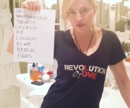 Días previos al estreno mundial, Madonna subió algunas fotos a su cuenta de Instagram en donde la vemos escribiendo en un papel o con cintas en su rostro con el nombre de varias ciudades del mundo, que serían los sitios en donde se proyectaría el video. Madonna comentó: «necesito a todos mis soldados conmigo».