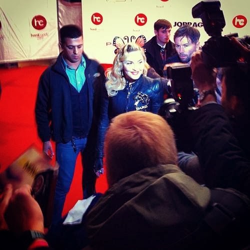 Madonna llegó a la alfombra roja de la gran apertura vestida con pantalones y una chaqueta de cuero negro, posó para fotógrafos y concedió entrevistas a algunos periodistas. Momentos antes, había subido una foto a su cuenta e Instagram: «esperando impaciente para la apertura de ‘Hard Candy’ en Berlin. Debo estar en forma si voy a comenzar una revolución», expresó.