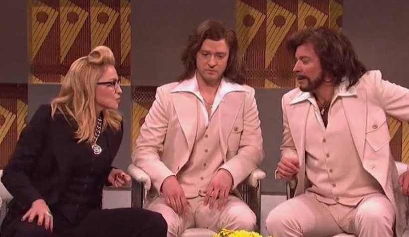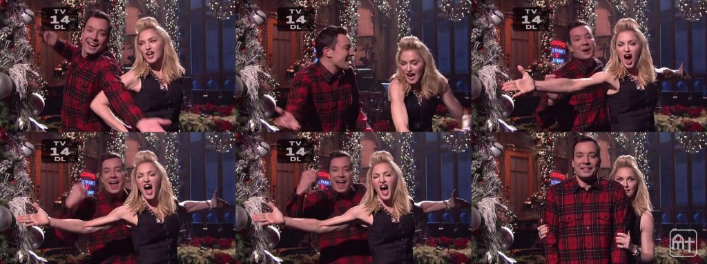 Madonna hizo de ella misma y se la vio con un look muy intelectual con traje negro y gafas de lectura. Durante el segmento, la cantante no dejó de expresar sus opiniones políticas diciendo que «los políticos anteponen su ideología personal a hacer lo correcto». En un momento, Madonna y Fallon comenzaron una divertida pelea la cual finaliza con Madonna colocándose su parrilla dental (la cual había sido extremadamente criticada en los medios días antes). Ante eso, Fallon cae rendido y expresa: «me ha domado como un caballo salvaje», a lo que Timberlake responde: «bueno… ella es Madonna…».