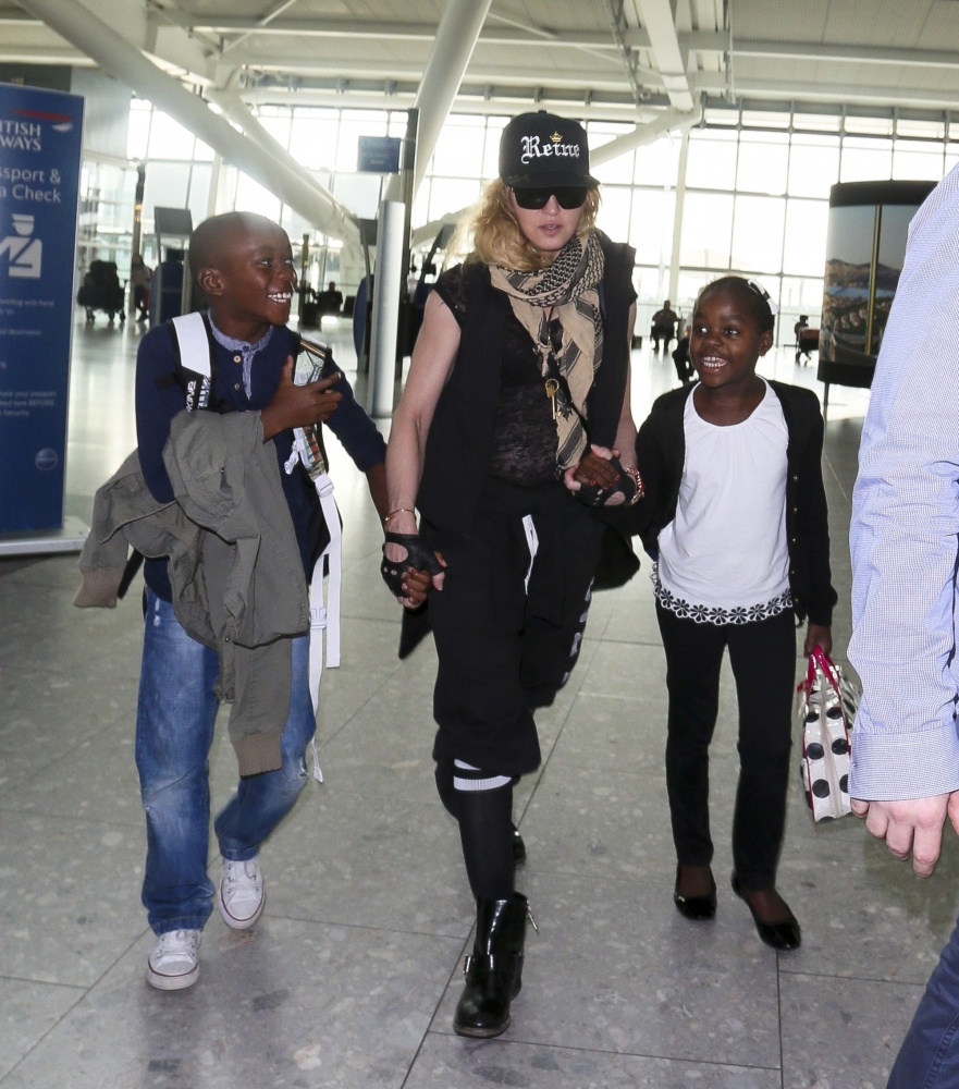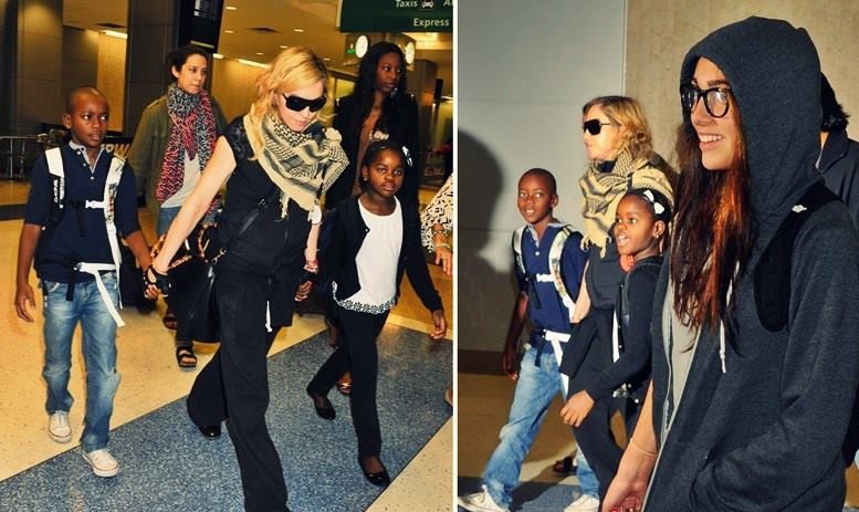 Madonna y sus hijos de regreso en New York, luego de su viaje por Malawi.