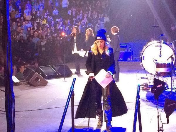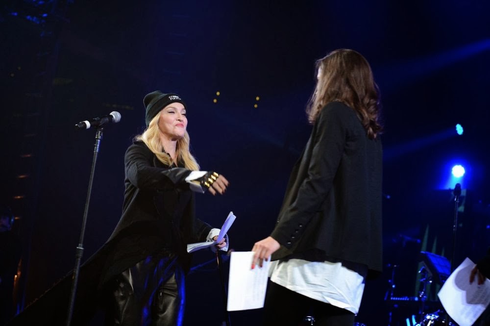 El 05 de febrero de 2014 se realizó en el «Barclays Center» de Brooklyn el concierto «Bringing human Rights Home» de «Amnistía Internacional», evento que reanudó una serie de conciertos globales que dicha institución, ganadora del Premio Nobel de la Paz, comenzó hace 25 años. Este eventó contó con la participación de grandes nombres de la música como Cake, the Fray, Bob Geldof, Tegan and Sara, Colbie Caillat y Cold War Kids. Este es el primer concierto de la organización desde que se celebraron los «Conciertos de Derechos Humanos» desde 1986 a 1998, en los que participaron U2, Bruce Springsteen, Sting y Peter Gabriel. A inicios del mes de enero ya se había confirmado la presencia de Madonna aunque no para realizar una actuación sino para decir un discurso sobre la persecusión política hacia los artistas y presentar a miembros de la banda «Pussy Riot». Recordemos que la última vez que Madonna había participado de un concierto de este tipo fue en 1986 en donde se presentó junto a su marido Sean Penn. Si bien Madonna y «Pussy Riot» no actuaron, «Flaming Lips» y Yoko Ono cerraron el evento de más de cuatro horas, mientras que Imagine Dragons fueron los favoritos del público con su éxito ganador del Grammy, «Radioactive». Lauryn Hill interpretó uno de sus éxitos, «Ready or Not» y Debbie Harry cantó «One Way or Another» y «Call Me».