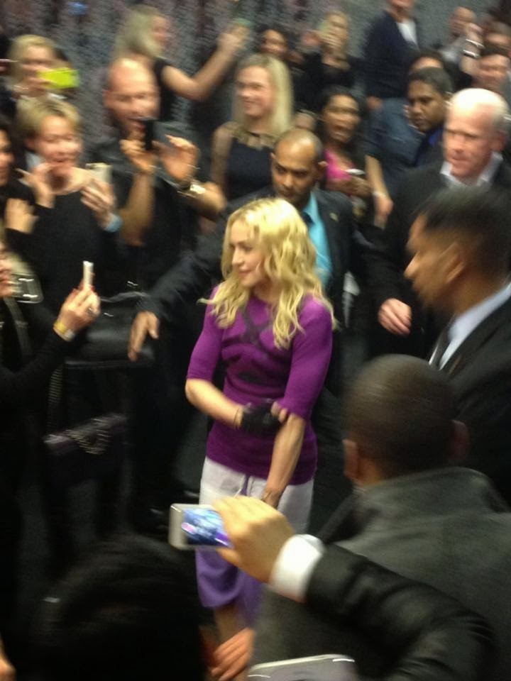 Luciendo elegante con una elegante chaqueta y falda negras diseñadas por el famoso dúo canadiense «DSquared2«, complementadas con guantes negros y dorados, la Reina del Pop, ahora Reina del Fitness se presentó en la alfombra roja para hablar con periodistas: «Solía correr cuando dejaba de bailar. Solía correr y pensaba que era muy aburrido. Entonces bailar es divertido porque puedes tocar música y puedes mover tu cuerpo en todas direcciones». Madonna se mostró muy entusiasmada hablando con la prensa de su nuevo gimnasio y además adelantó que ya estaba trabajando en nueva música. Entonces, cuando se le preguntó si hay algún artista canadiense en su lista de reproducción de ejercicios, ella respondió: «Drake»… ¿Y le gustaría colaborar con la estrella local del hip-hop en el futuro? «Si me acepta…», respondió Madonna.