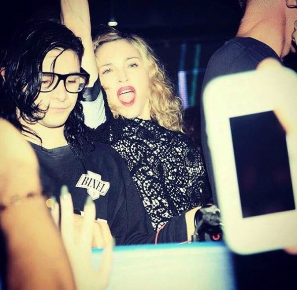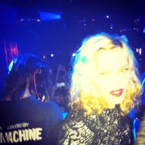 Al promediar la noche Madonna, entró flotando en la sala y se unió a Jeremy Scott en la cabina del DJ. Más tarde, la cantante se unió al DJ Diplo (con quien venía trabajando en su último disco) y Skrillex con A-Trak. Luego de tomarse varias fotografías y bailar un largo en el VIP, la Divina se retiró del lugar.