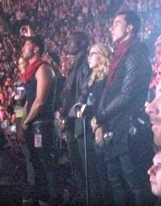 Madonna aún usando el bastón para caminar presenció el show de Miley Cyrus de la gira «Bangerz Tour» en Brooklin.