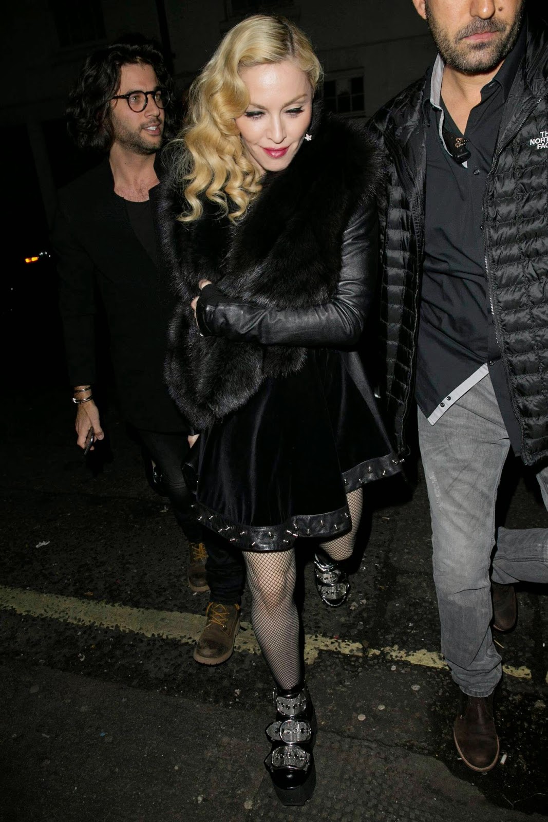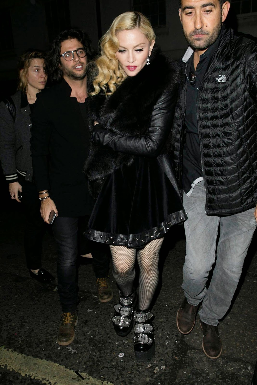 Luego de su caída en los «Brits Awards» y en medio de su gira promocional de su nuevo disco «Rebel Heart», Madonna decidió salir a celebrar una noche en Londres y para esto escogió un evento más que importante: el cumpleaños de su gran amigo, el fotógrafo Mert Alas. El evento se realizó en el esclusivo club «Annabel’s» de la capital inglesa; Madonna llegó luciendo impecable con su cabello con ondas, un vestido corto negro, tapado de piel y sus nuevas botas de Alexander Wang.