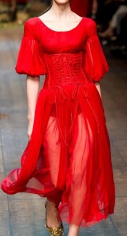 - Vestido largo de seda y tul con corset en color rojo de «Dolce & Gabbana».