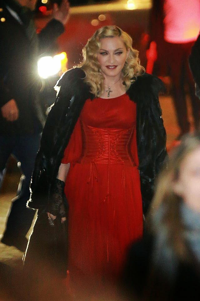 Enfundada en un impactante vestido largo rojo, tapado negro y guantes de encaje, Madonna saludó a la gran cantidad de fanáticos apostados a la salida del estudio de televisión antes de subirse a su coche con dirección a su merecida cena. Más tarde, la diva posteó en Instagram: «Milán fue divertido. Me comí tres platos de pasta».