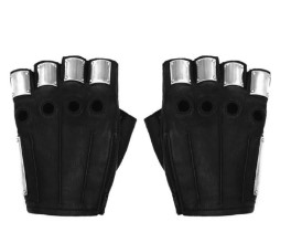 - Guantes cortos sin dedos con aplicaciones en metal modelo «MDNA Armor» de la firma «Magesty Black».