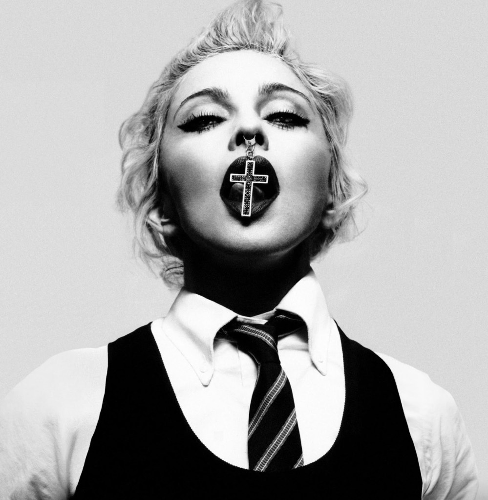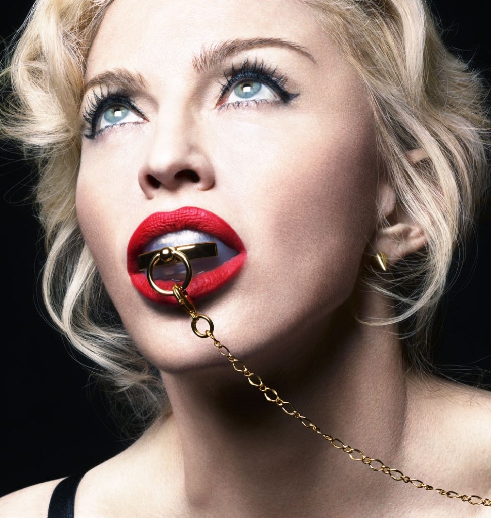 Otro de los temas que se tocan en las imágenes fue claramente el sexo. Con fotos en donde vemos a una Madonna con un estilo que nos retrotrae directamente a 1992 en su época del libro «Sex», la vemos con arneses y sostenes de cuero, medias de red y guantes.