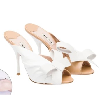 - Sandalias en cuero blanco con moño de la colección primavera-verano 2015 de «Miu Miu».