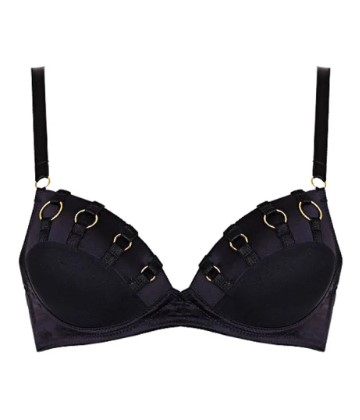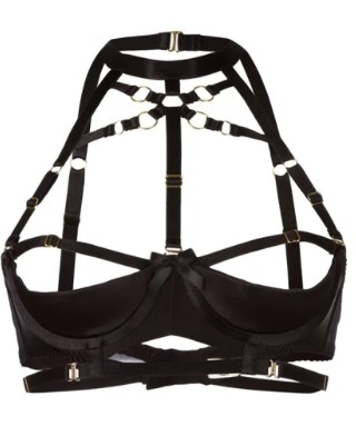 - Sujetador en cuero con aros metálicos de la firma «Bordelle».