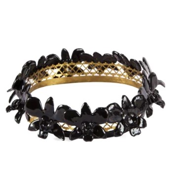 - Corona de metal dorado con 12 orquídeas en resina negra realizados especialmente para este portfolio por «Moderkai».