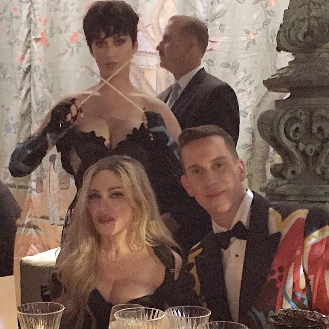 Durante el evento, Madonna se mostró muy a gusto con Katy Perry, quien también había sido vestida por Scott, con un atuendo de la misma línea. Durante la cena, la Reina del Pop, decidió dar por finalizado años de rumores sobre su pelea con Lady Gaga y aprovechó para tomarse varias fotografías con ella. Al día siguiente, Katy Perry subió una de estas imágenes a sus redes diciendo: «estamos lanzando nuestro nuevo single mañana«, sugiriendo que las tres cantantes habían realizado una colaboración. Esto rompió las redes sociales y fue tendencia casi de inmediato, sin embargo, todo había sido una pequeña broma de Perry.