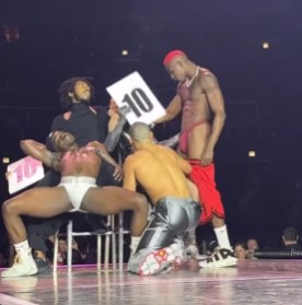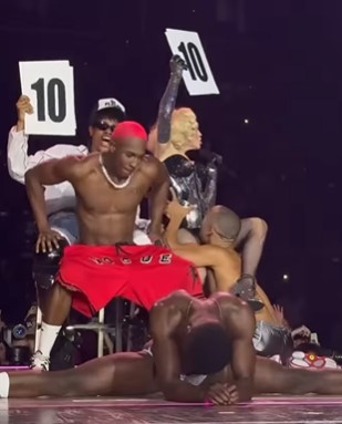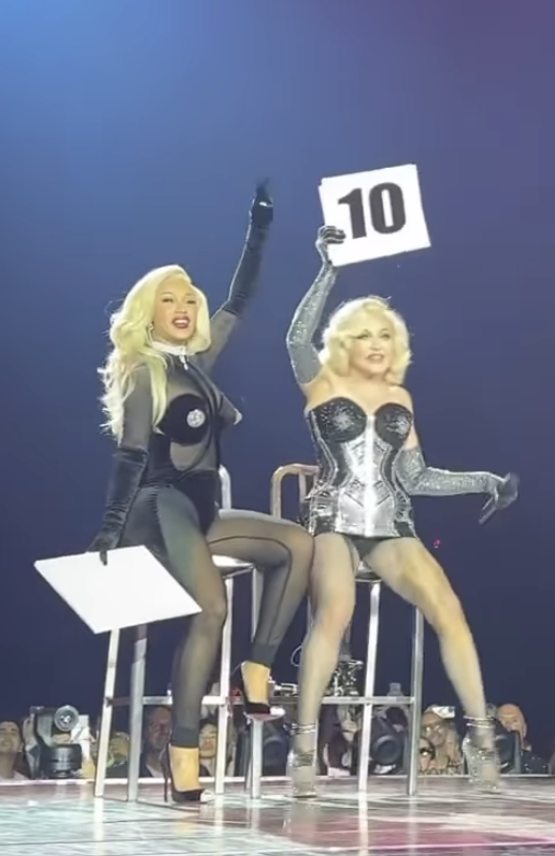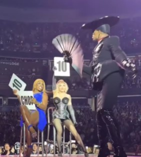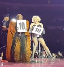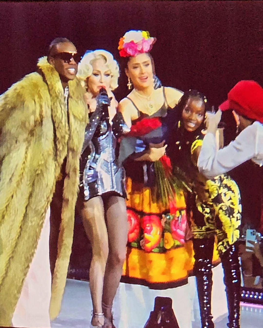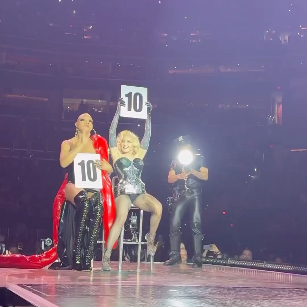 En esta tercera noche, como invitada especial al momento «Ballroom», se llevó a la artista drag Wengy Guevara, conocida en redes sociales por hacerse viral con un video y luego ganadora del reality show «La Casa de los Famosos». Al parecer, Wendy no sabía muy bien como comportarse en el escenario lo que hizo que Madonna tratara de explicarle que debía permanecer sentada y puntuar a los bailarines. Momento divertido.