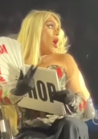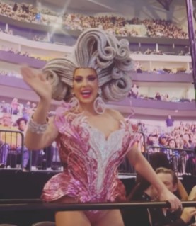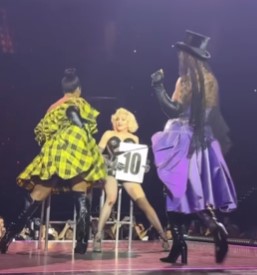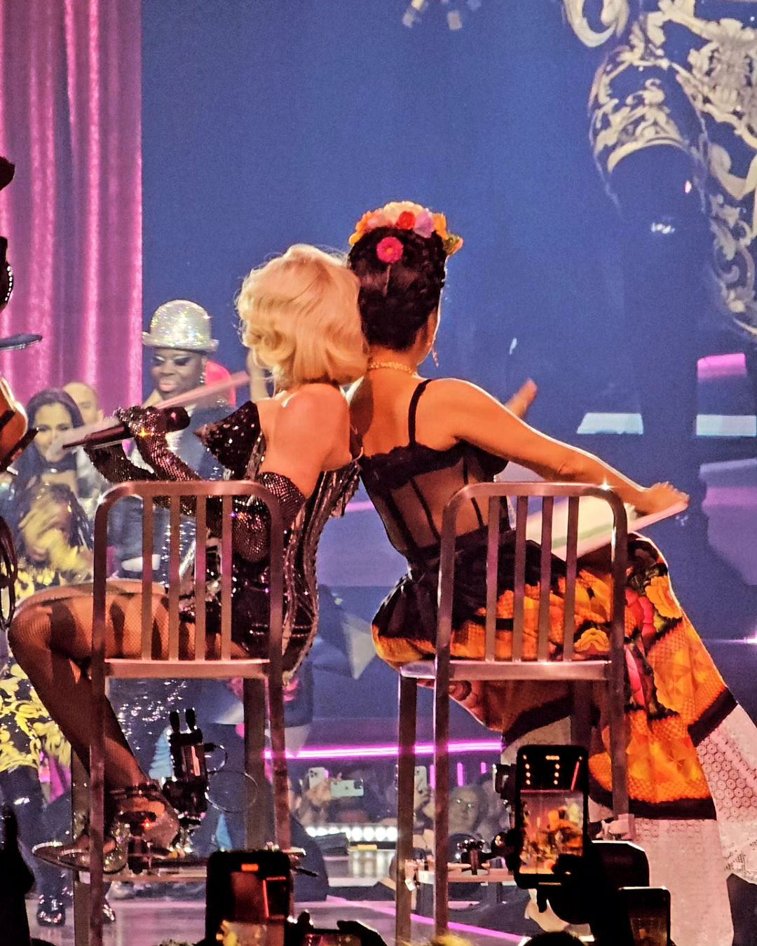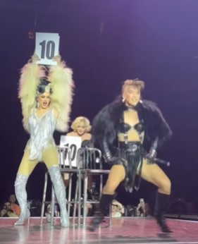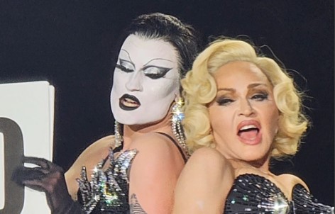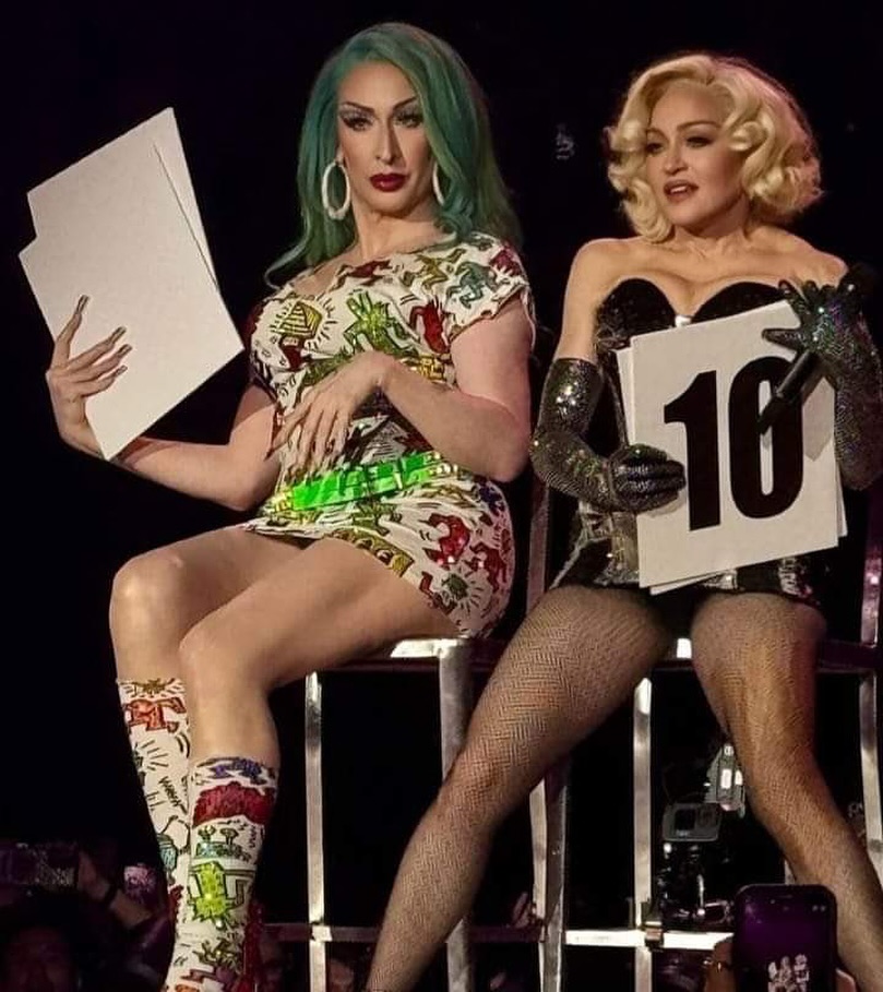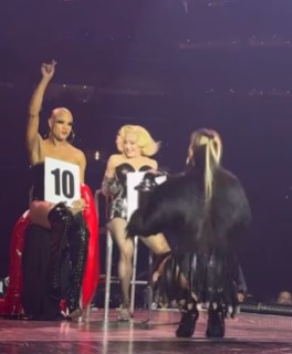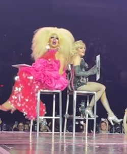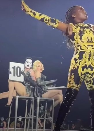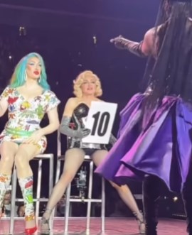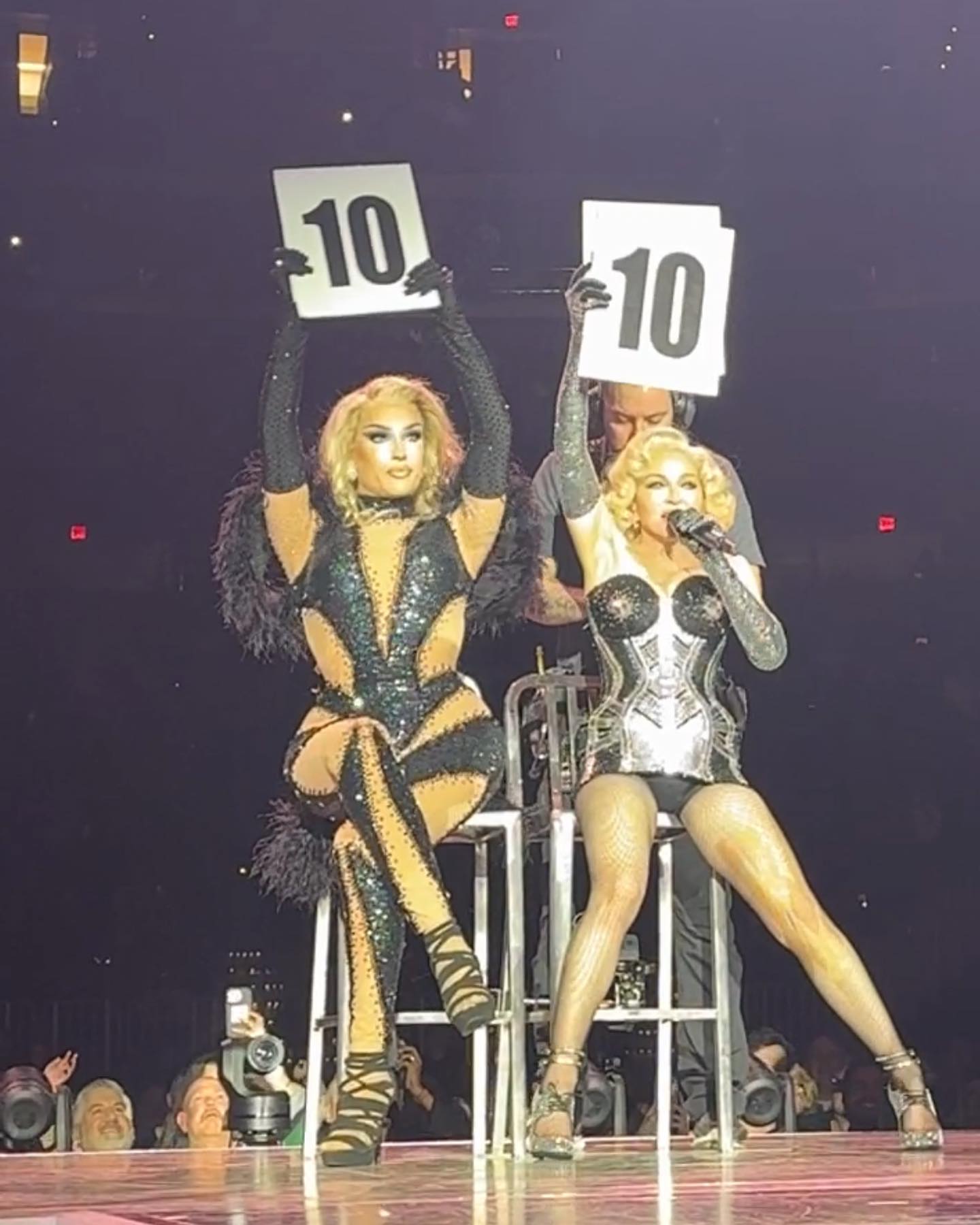 Para la noche del 24 de abril, la invitada al «Ballroom» fue la artista drag «Pixie Aventura» quien ya había estado junto a Madonna sobre un escenario durante las fiestas del Gay Pride en New York en 2022, y como podemo ver, usando la misma peluca.