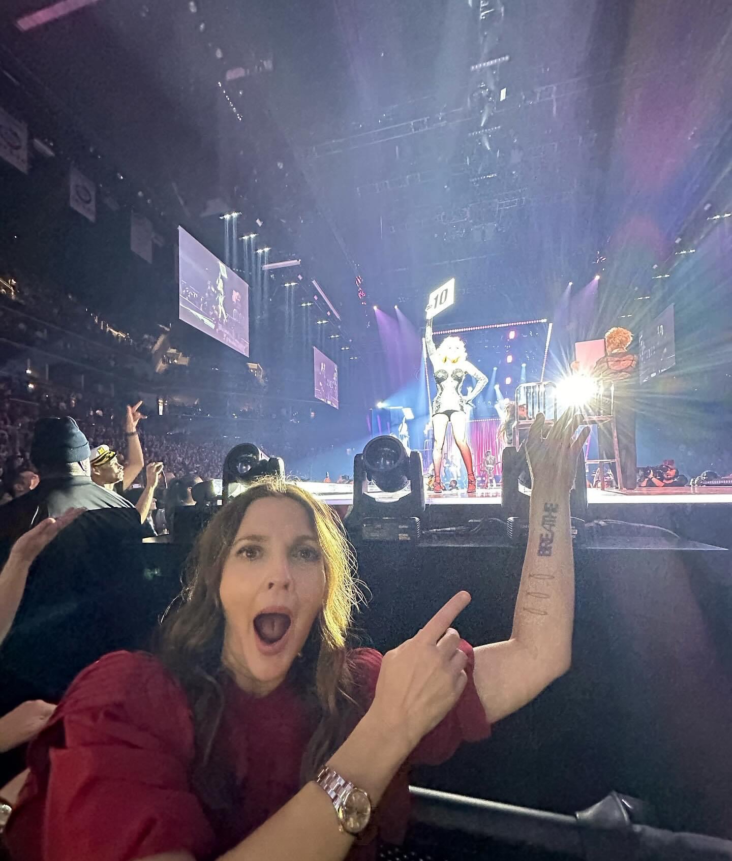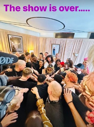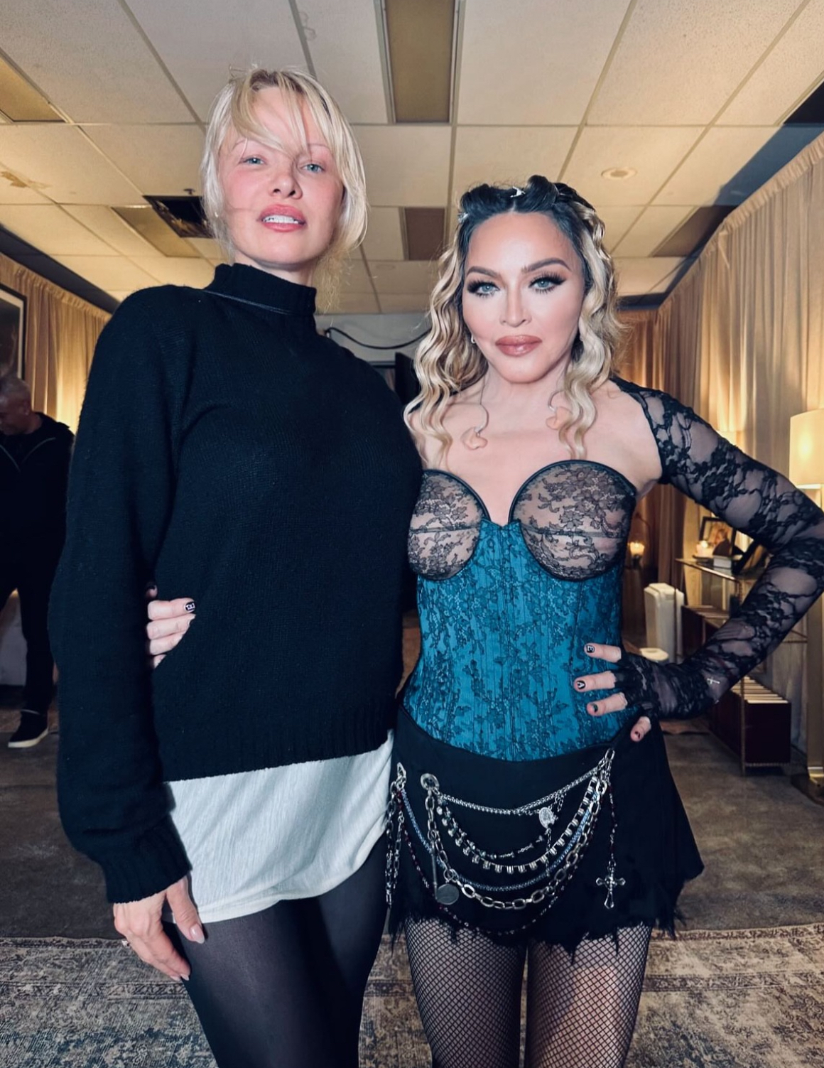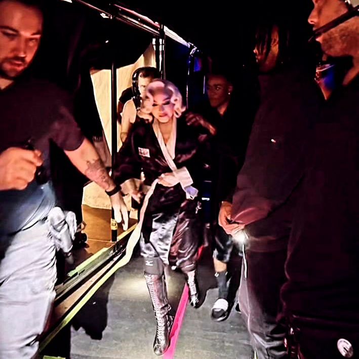 Luego se subirían algunas fotos a las redes en donde vemos a Madonna y Kylie en camerinos antes del inicio del show. Aparentemente Kylie participó de la oración previa a comenzar el show. La cantante australiana lució un pantalón simil cuero de serpiente y un top negro con la palabra «Madonna» bordada en pedrería, claramente un guiño al atuendo que Madonna lució en los MTV Europe Music Awards en el 2000.