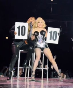 Para el último show del año, Madonna subió al escenario nada menos que al propio Papá Noel en un sketch bastante divertido que no terminó sin algunos contratiempos cuando el pobre «Santa» cayó al suelo desde su silla al intentar sostener a una bailarina. El «Celebration Tour» regresará de gira el lunes 8 de enero de 2024 para la primera de dos noches en el «TD Garden» de Boston luego de un merecido descanso para Madonna y su familia.