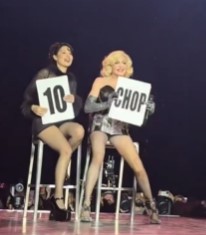 Por otro lado, mucho se había venido comentando en los últimos días acerca de un posible re-encuentro entre Madonna y sus famosas y legendarias coristas, Niki Haris y Donna DeLory. Las cantantes habían comenzado a hablar sobre la gira de Madonna en algunos programas de radio y redes sociales y más tarde, el sábado 27 y domingo 28 de enero, realizaron un show en el «Green Room 42» de New York en donde se animaron a interpretar dos grandes hits de la Reina del Pop: «Nothing Really Matters» y «Rain». Recordemos que estas canciones están incluídas en la gira actual de Madonna lo que acrecentó aún más los rumores de que posiblemente las coristas se unieran a Madonna en el escenario durante la noche del 29 de enero. De hecho, cuando finalizó su show, Haris comentó a su público: «Nos vemos mañana», haciendo referencia al show de Madonna. Esto causó un gran revuelo y por supuesto grandes esperanzas a todos los fans que estaban deseosos de poder ver a este icónico trio nuevamente sobre el escenario. Sin embargo las cosas no resultaron como todos esperábamos. Niki Haris y Donna DeLory se encontraban en primera fila durante el show pero, jamás fueron invitadas a subir al escenario. En su lugar, y durante el segmento «Ballroom», se escogió como jurado a la actriz y presentadora Kelly Ripa, que, si bien mostró un gran sentido del humor sobre el escenario, causó una gran decepción entre todos los presentes. No se sabe si Madonna logró reunirse con Haris y DeLory luego del show.