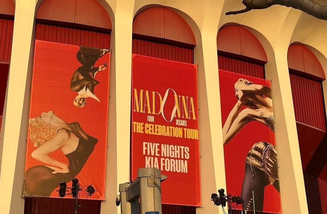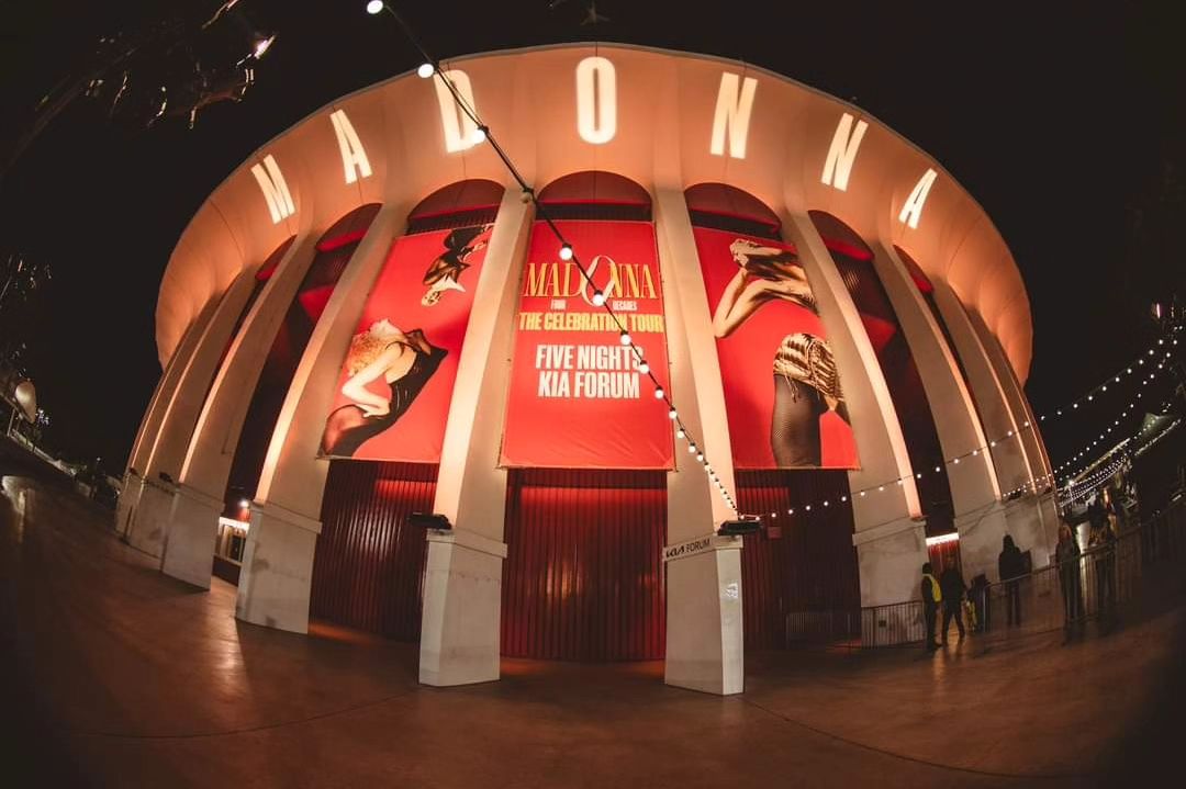 «The Celebration Tour» desembarcó en la ciudad de Los Angeles para realizar una semana completa en el «Kia Forum» con una seguidilla de cinco shows. El lugar se decoró para la ocasión de una manera muy especial con grandes carteles y cientos de fotografías icónicas de Madonna en todo su exterior. Una ambientación como verdaderamente se merece la Divina.