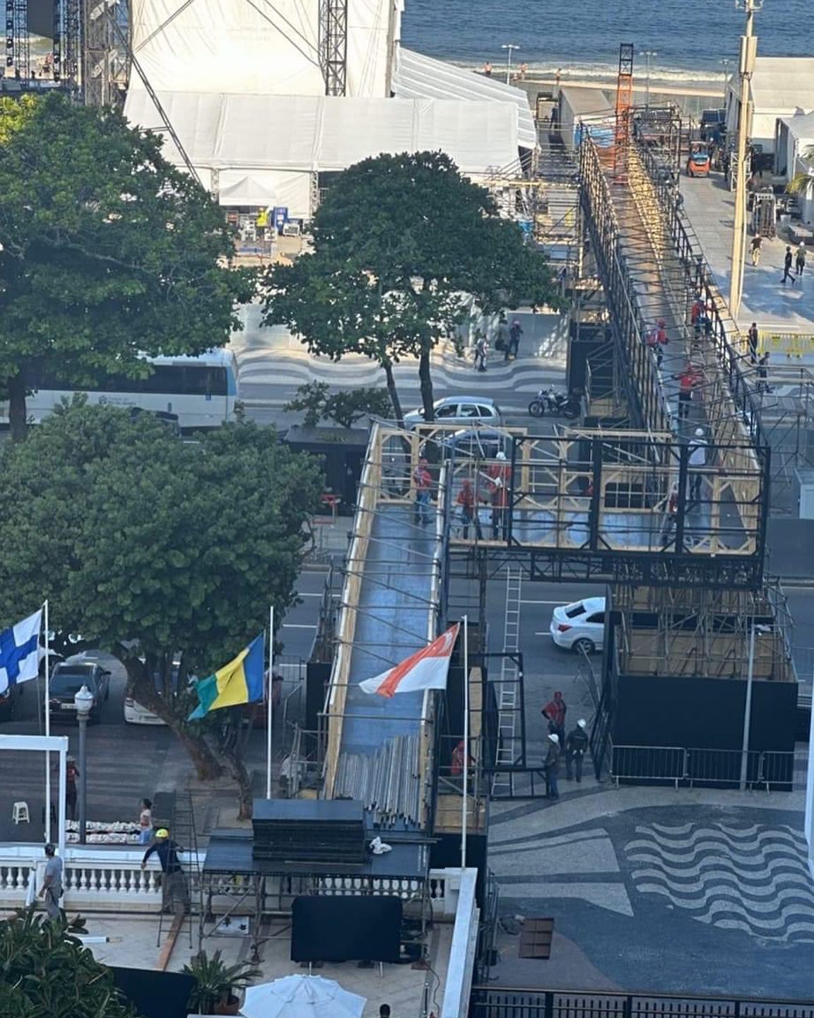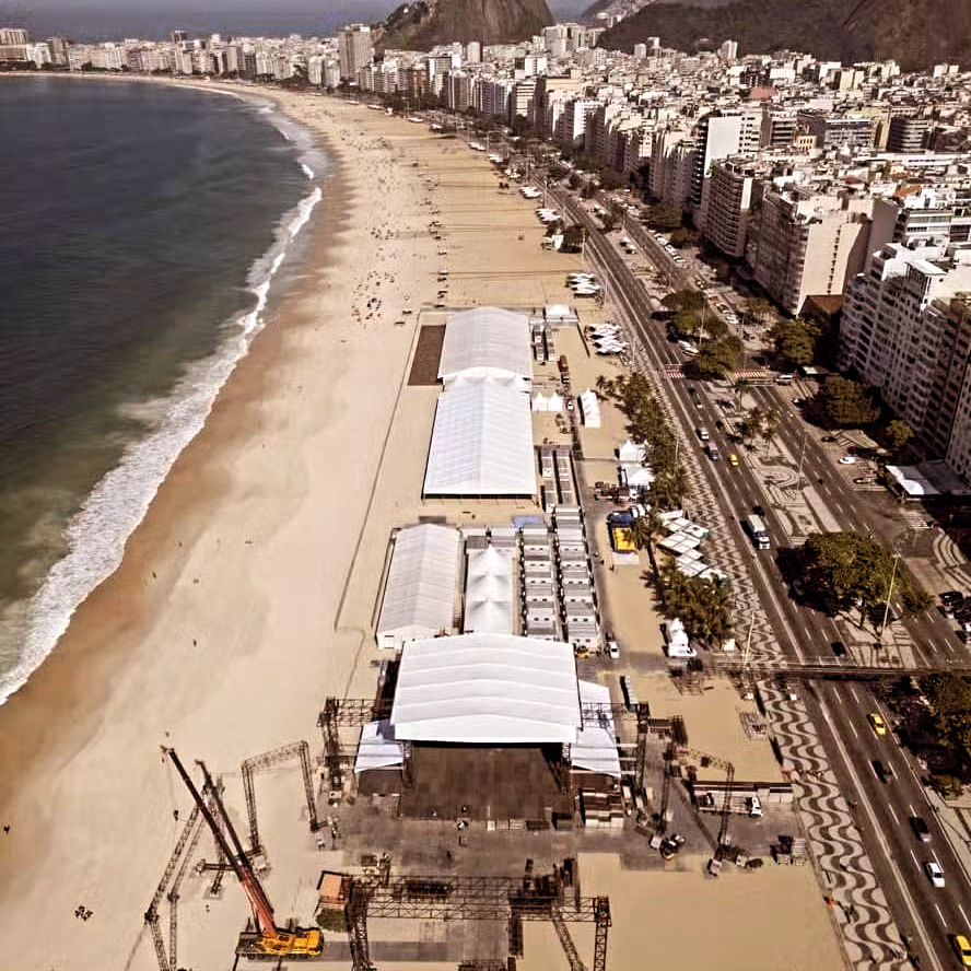 A fines de abril, mientras Madonna se econtraba dando sus últimos 5 conciertos en el «Palacio de los Deportes» en México, la ciudad de Rio de Janeiro comenzó con los preparativos del gran evento. Se inició con la construcción del gran escenario y los diferentes sectores del mismo, la colocación del sistema de audio y sonido, el cierre y vallado de las playas como así también la instalación del impresionante sistema de seguridad. Gran cantidad de carteles y publicidad comenzó a aparecer por toda la ciudad, la que a un mes del show ya tenía una ocupación hotelera del 100%.