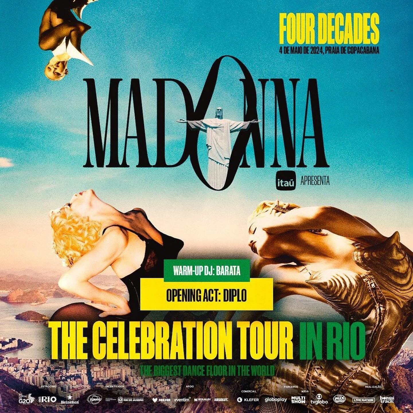 A mediados de febrero de 2024, la noticia de que Madonna visitaría Brasil empezó a circular nuevamente y esta vez con más peso ya que se decía que los rumores habían salido de gente vinculada directamente con el Banco Itaú. Se barajó la posibilidad de que Madonna realizara una presentación especial en Brasil para terminar el acuerdo comercial con el banco. El 21 de marzo, Madonna subió a sus redes un video en donde decía: «Brasil… estoy llegando pronto». Este video fue realizado durante las grabaciones del comercial en París y así se confirmó oficialmente la visita de Madonna a Brasil. Más tarde nos enteraríamos que la Reina del Pop no haría una visita promocional, sino que extendería su gira para dar un último y espectacular show en Rio de Janeiro para sí poner fin definitivo a su «The Celebration Tour».