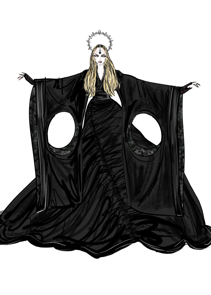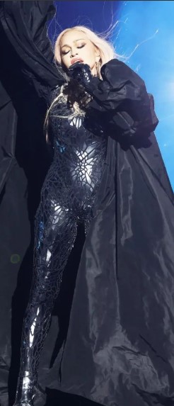 Para la balada final, que en Europa fue «Rain» y para América se optó por «Take a Bow», Madonna lució una gran capa en taffeta negra también diseñada por Yohannes y Melssen y que estuvo inspirada en la capa negra creada por Jean-Paul Gaultier para el video «Frozen».