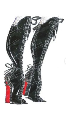Se terminó el look un par de botas de vaquero personalizadas de Miu Miu. «Llegan hasta la rodilla y tienen hermosas costuras blancas del estilo occidental, y un talón y una puntera plateados», dice Melssen. «Las chicas lo van a querer». Durante un show en el «Madison Square Garden» en New York, las botas altas fueron reemplazadas por botines cortos.