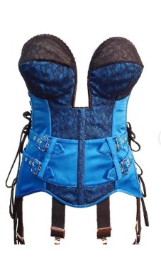 De este outfit también hubo variaciones en cuanto al color y diseño del corset. Así además, del corset en color azul-turquesa, que Madonna usó en la mayoría de las ocasiones se vió una versión completamente en negro con ribetes en azul, que se usó unicamente en el show en Milán, Italia y luego vimos una nueva variación en color azul eléctrico con sutiles cambios en cuanto al diseño de la prenda que se usaron en los shows en Cologne, Alemania y en un show en Londres.