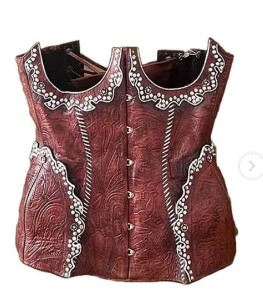 Más tarde, se interpreta «Don’t Tell Me», con un corset de cuero labrado a mano en color chocolate con apliques de cuerdas y cordones. Se completó el estilo con otro sombrero de cowboy ala ancha con aplique de metal y acrílico también de Baginskiy. Cinturón de cuero texturado con apliques de cuerdas y placas metálicas de «Etsy» que se complementó con una gran hebilla estilo western vintage original en asta de toro con detalles en oro y plata. Este atuendo estuvo inspirado en la «cowgirl» que nos presentara Madonna durante el «Drowned World Tour» allá por el 2001. El diseño de todo el outfit estuvo a cargo de Eyob Yohannes quien comentó: «Queríamos llevarlo a este mundo futurista y genial».
