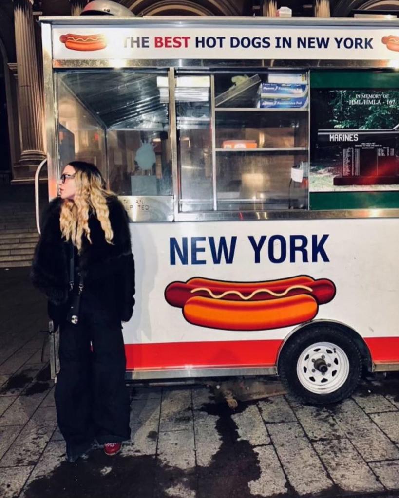 Madonna aprovechó también para tomarse unas fotos al ingreso del museo en los famosos carritos de «hot dogs» diciendo «I Love New York», su frase ya célebre, lo cual nos llevó hacia sus primeros años en la ciudad y nos llenó de nostalgia.