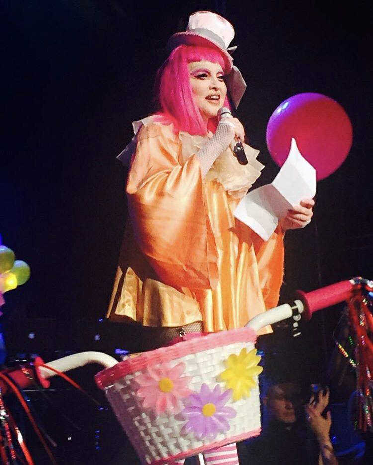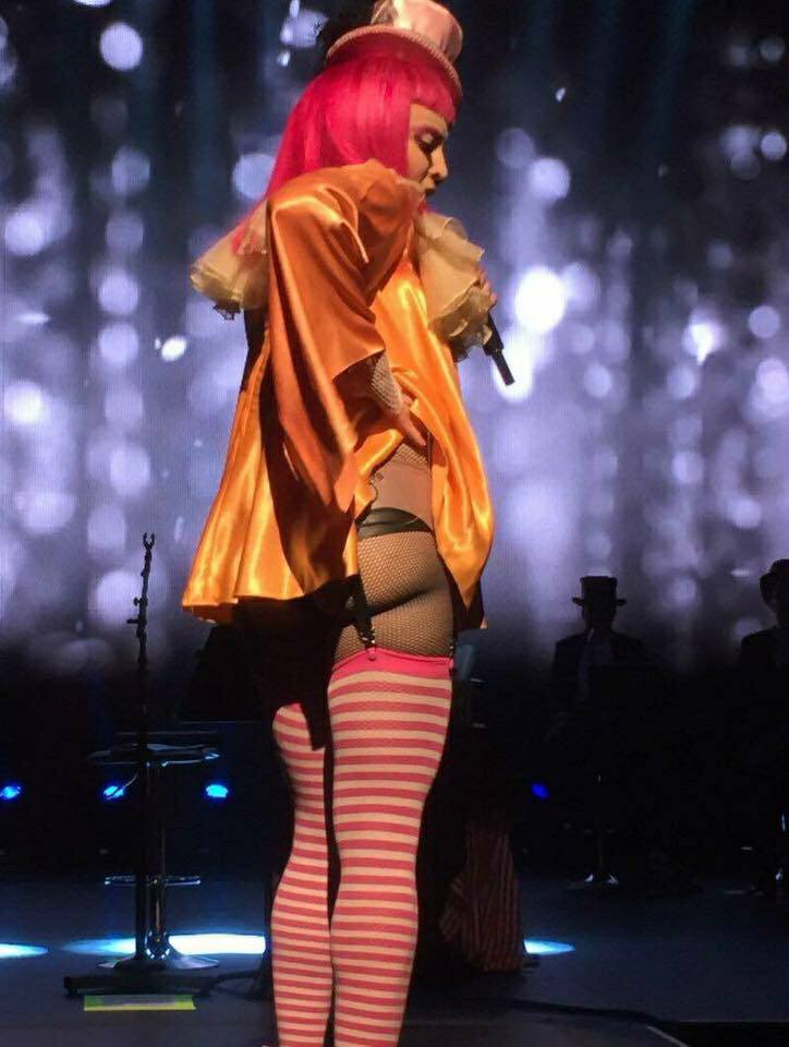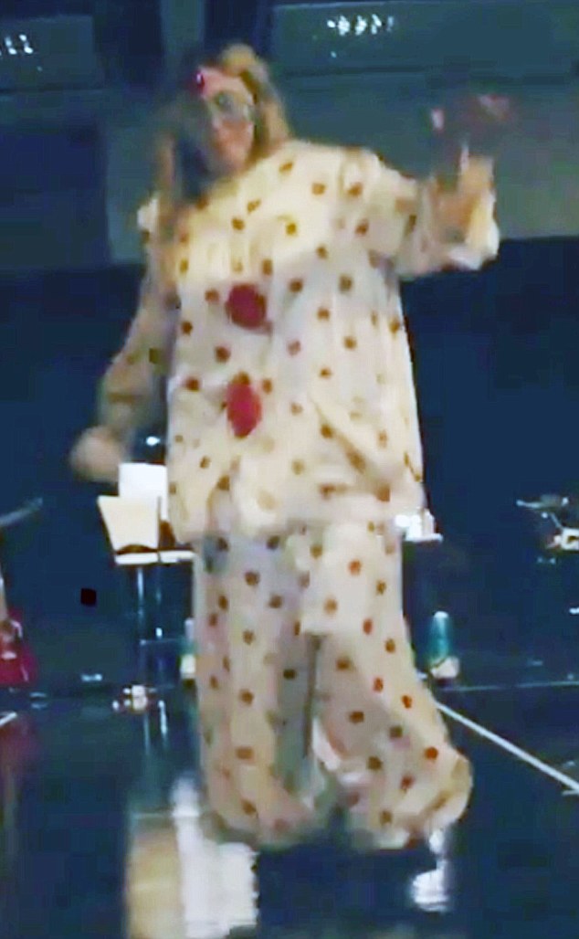- La temática del show eran los payasos, de modo que Madonna lució un vestido corto de satén en color amarillo, medias y sombrero. Los miembros de la banda lucieron de manera similar. Todo el escenario estaba decorado como un circo como así también lo fue la música de introducción.