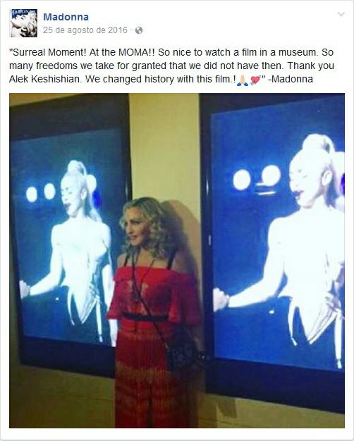 Madonna compartió una foto en su cuenta de Instagram diciendo: «un momento surrealista en el MoMA… Que hermoso ver una película en un museo. Tanta libertad…»