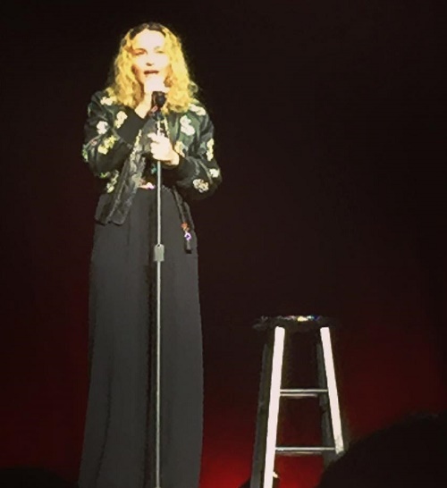Así fue que la cantante, quien ya había prodado suerte en el stand-up durante el programa de Jimmy Fallon y en su show especial «Tears of a Clown» en Australia durante 2015, decidió realizar una nueva rutina de comedia amadrinada por la dueña del show. Madonna realizó una breve rutina de comedia contando algunos chistes y hablando sobre política, más precisamente en contra de Donald Trump y a favor de Hilary Clinton con el riesgo de ser abucheada como lo fue Schumer al tocar dichos temas en la ciudad de Tampa. Sin embargo, la cosa fue un poco más amigable en New York y Madonna se llevó algunos aplausos.«Una cosa más antes de presentar a este genio de la comedia», dijo Madonna, refiriéndose a Schumer, «Si votan por Hillary Clinton, les haré una mamada… ¡Soy buena en eso, me tomo mi tiempo, hago mucho contacto visual y trago…» Un cierre típico de Madonna que causó más aplausos aún.