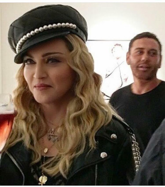 Madonna llegó luciendo muy estilo Marlon Brandon con una gorra tipo «biker», pantalones negros ajustados y chaqueta de cuero con detalles en perlas, se mostró a gusto con los anfitriones y posó con la única fotografía suya de la muestra, una imagen tomada a fines de 2014 para la revista «Interview». Después de la vista previa, muchos de los invitados se dirigieron a través de «Berkeley Square» hasta «Mark’s Club«, donde Edward Enninful de la revista «W» estaba organizando una cena de celebración después de haber recibido la «Orden del Imperio Británico» de manos de la Reina Isabel II más temprano ese día.