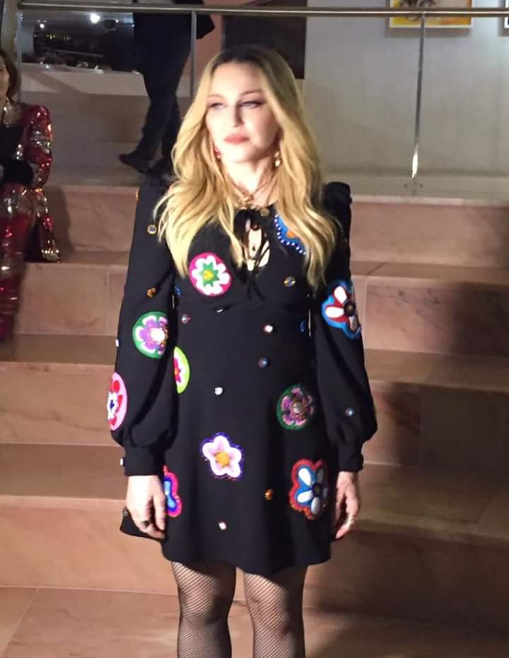 Madonna se hizo presente en el «Faena Art Forum» de la ciudad de Miami para dar inicio al show especial a beneficio de su fundación «Raising Malawi». La cantante se mostró muy animada con un vestido negro corto con mangas abullonadas y apliques de flores de colores de Jeremy Scott para «Moschino». Estuvo acompañada de su hijo David Banda y más tarde pasó a tomarse fotografías con gran parte de los invitados y por supuesto, con el organizador, el empresario argentino Alan Faena.