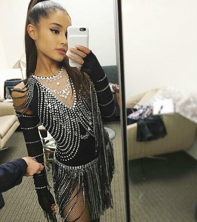 - También, uno de los momentos más importantes de la noche fue cuando Ariana Grande salió a lucir el vestido de cristales de Madonna usado durante la gira «The Rebel Heart Tour» el cual también fue puesto a la venta. El famoso traje fue peleado por la propia Ariana Grande y Sean Penn para poder adquirirlo, pero el ganador fue este último, quien se llevó la prenda.