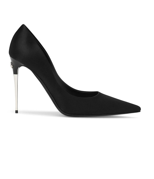 - Zapatos de tacón stiletto en satén color beige modelo «Lollo» de «Dolce & Gabbana».